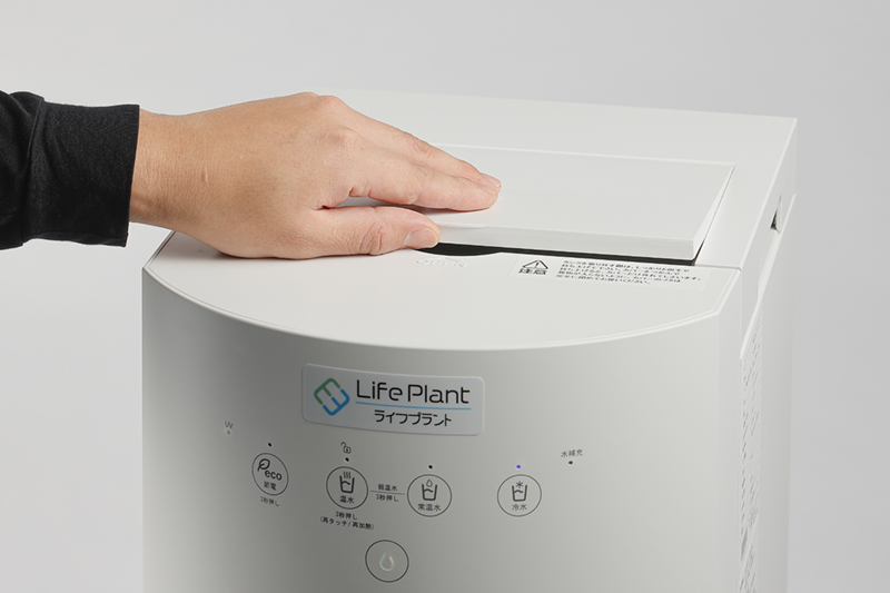 ◯サーバー上部の蓋を開けて、タンクへ注いでください。最大4リットルの水が入ります。