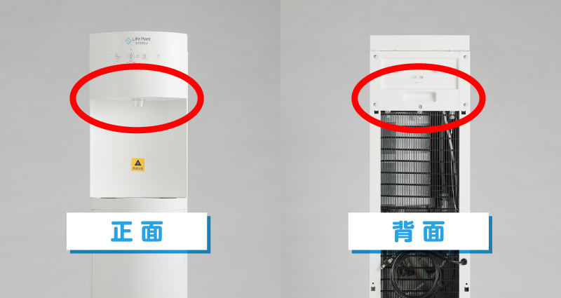 3、正面の抽出口と背面の持ち手をつかんで、設置場所までゆっくりと運ぶ